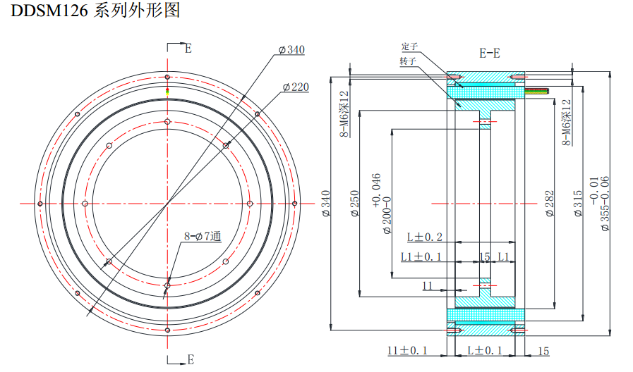 DDSM126 series brushless direct drive motor outline