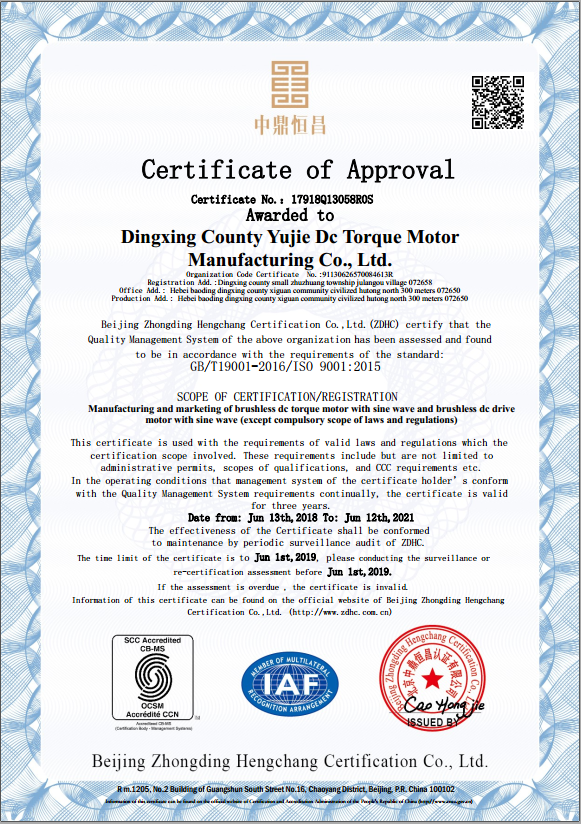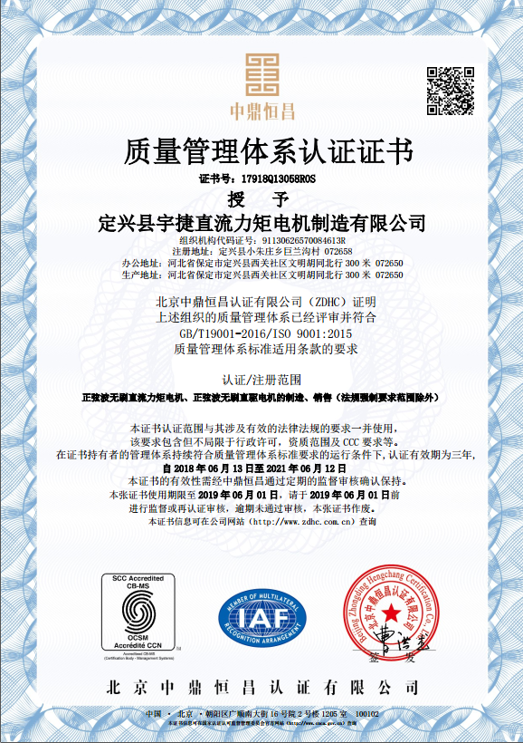 | 河北宇捷電機(jī)科技有限公司通過(guò)質(zhì)量管理體系認(rèn)證 |